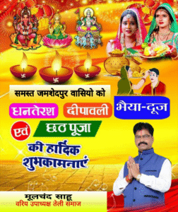 मूलचंद साहू से समस्त जमशेदपुर वासियो को धनतेरस, दीपावली, छट की सुभकामनाये दी