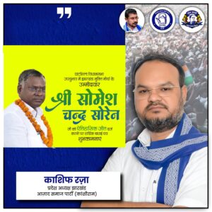आज़ाद समाज पार्टी के प्रदेश अध्यक्ष काशिफ़ रज़ा ने घाटशिला उपचुनाव में जीत पर जेएमएम के सोमेश चंद्र सोरेन को दी बधाई
