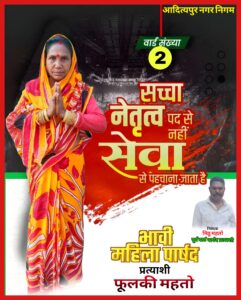 वार्ड संख्या 2 में चुनावी मुकाबला अब दिलचस्प मोड़ पर पहुंच गया है। महिला प्रत्याशी फूलकी महतो के मैदान में उतरते ही वार्ड की राजनीति में हलचल तेज हो गई है। उनकी दावेदारी ने बाकी सभी प्रत्याशियों की रणनीति बिगाड़ दी है।